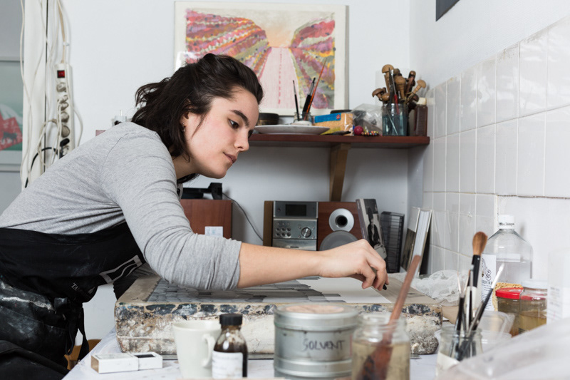 Alice a également suivie une formation professionnelle d'un an au Tamarind Institute (Nouveau-Mexique, Etats-Unis) et a décidé d'enseigner la lithographie sur pierre depuis 2016, en donnant des stages d'une journée ou deux, et permettre aux intéressés de se plonger dans un monde bien particulier avec elle.